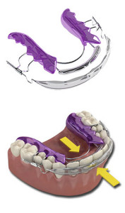 The image below shows the squeeze effect of the two aligner bows on the front teeth. The inner bow pushes forwards, while the outer bow pulls back on the front teeth.